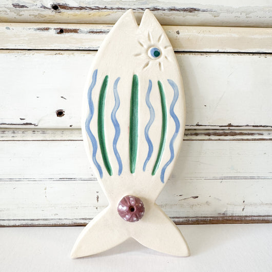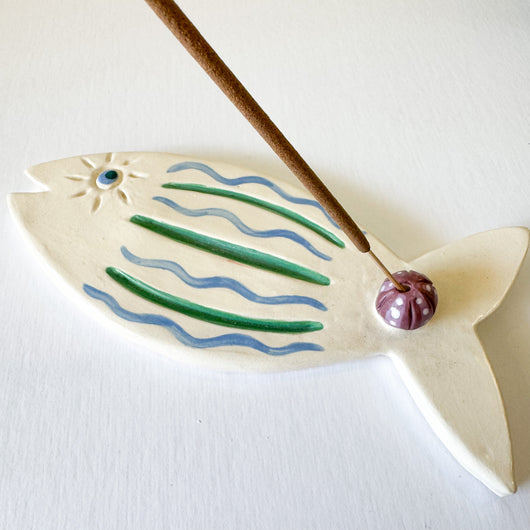 A sweet fish to place amongst your treasures and enjoy the sweet aroma of your favourite incense... simply pop the stick in the mini sea urchin and relax.