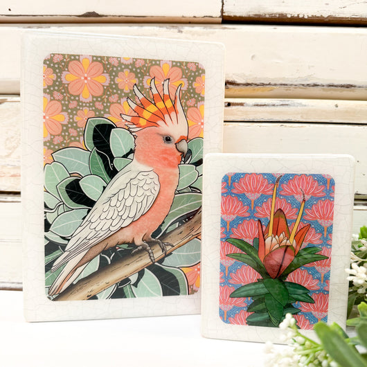 The Medi Woodblock is a combination of hand drawn & printed illustrations combined with beautiful fabrics, mixed media & resin. You can hang your Lost & Found Art Co woodblock on the wall or stand it in amongst your treasures or indoor plants for a pop of unexpected colour.