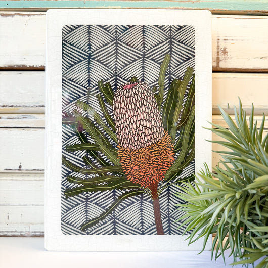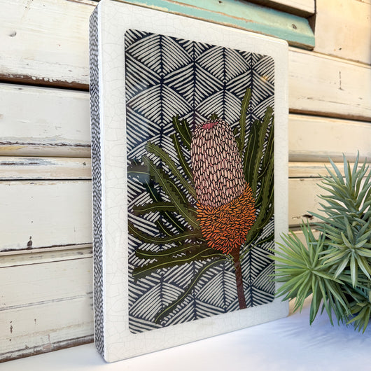 The Maxi Woodblock is a combination of hand drawn & printed illustrations mixed with a dash of beautiful fabrics, mixed media, wood & resin. You can hang your Lost & Found Art Co woodblock on the wall or stand it in amongst your treasures or indoor plants for a pop of unexpected colour.