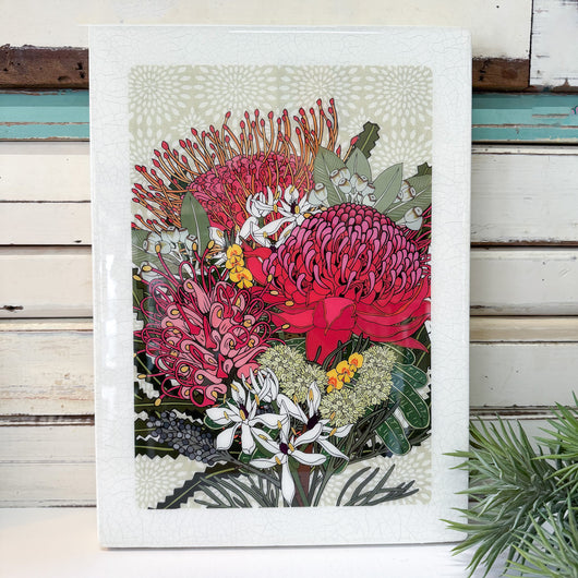 Stunning Australian native flowers with bursts of the desert bush to the wild forrest... a lovely mix of Waratah, Grevillea, Protea, Everlastings, Milkmaids, Gumnuts & the cutest Egg & Bacon flowers.