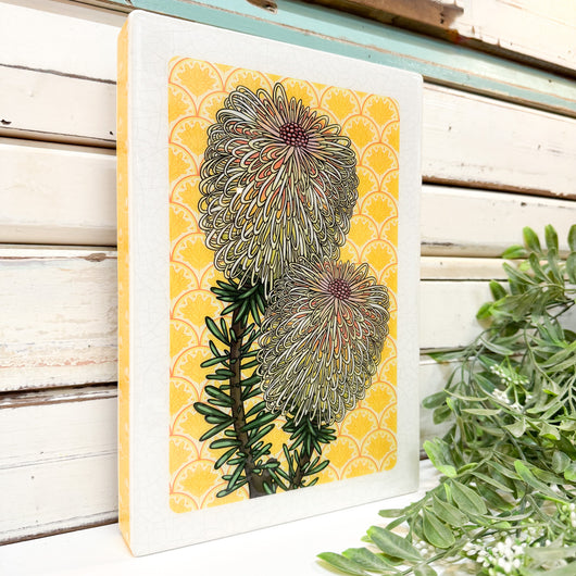["Banksia","FLOWERS","lost \u0026 found art co","Maxi Woodblock - Teasel Banksia"]