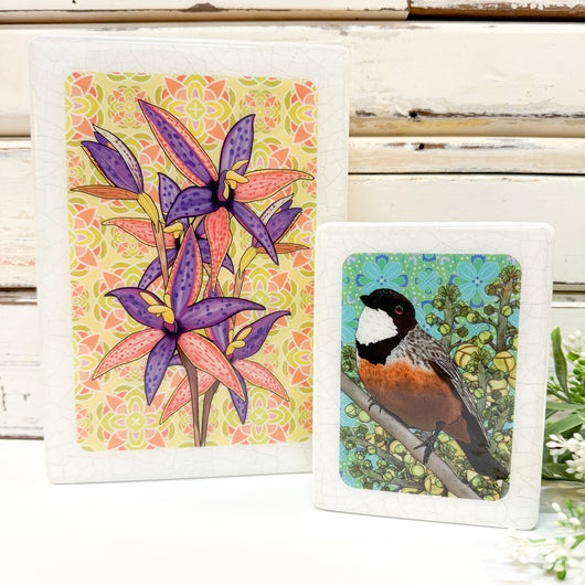 The Medi Woodblock is a combination of hand drawn & printed illustrations combined with beautiful fabrics, mixed media & resin. You can hang your Lost & Found Art Co woodblock on the wall or stand it in amongst your treasures or indoor plants for a pop of unexpected colour.